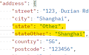 收货人的州/省(consignee.address.state),在接口中要传输代码, 由ISO 3166-1 2位国家代码 + ISO 3166-2 州/省代码组成