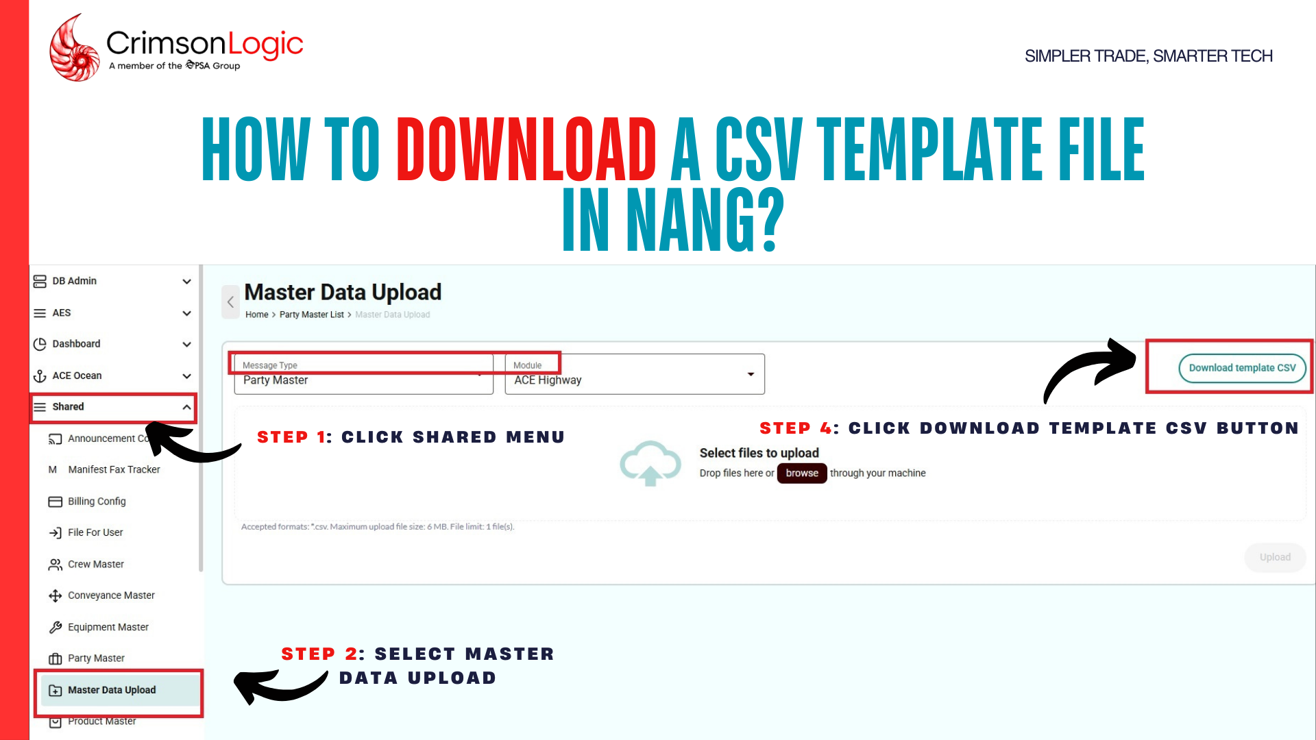 If you request a CSV file for the master data upload function, it is readily available for download in this section of NANG.