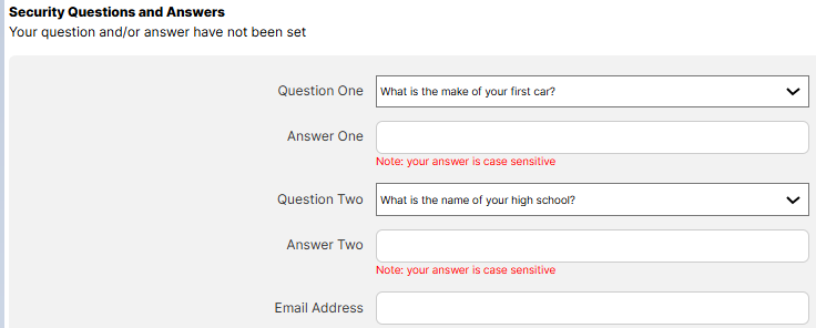 Step 4: You will be routed to “Security Questions” page. Answer all the Security Questions you choose when you first setup your account. Once done, click Submit Button.