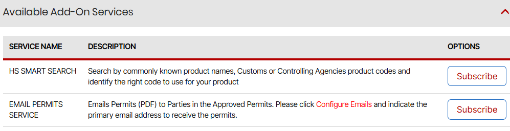 EMAIL PERMITS SERVICE - Emails Permits (PDF) to Parties in the Approved Permits. Please click Configure Emails and indicate the primary email address to receive the permits.