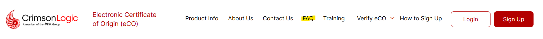 Step 1: Please go to eCO System https://certoforigin.crimsonlogic.com/eco/cusLogin/login.cl then click FAQ.